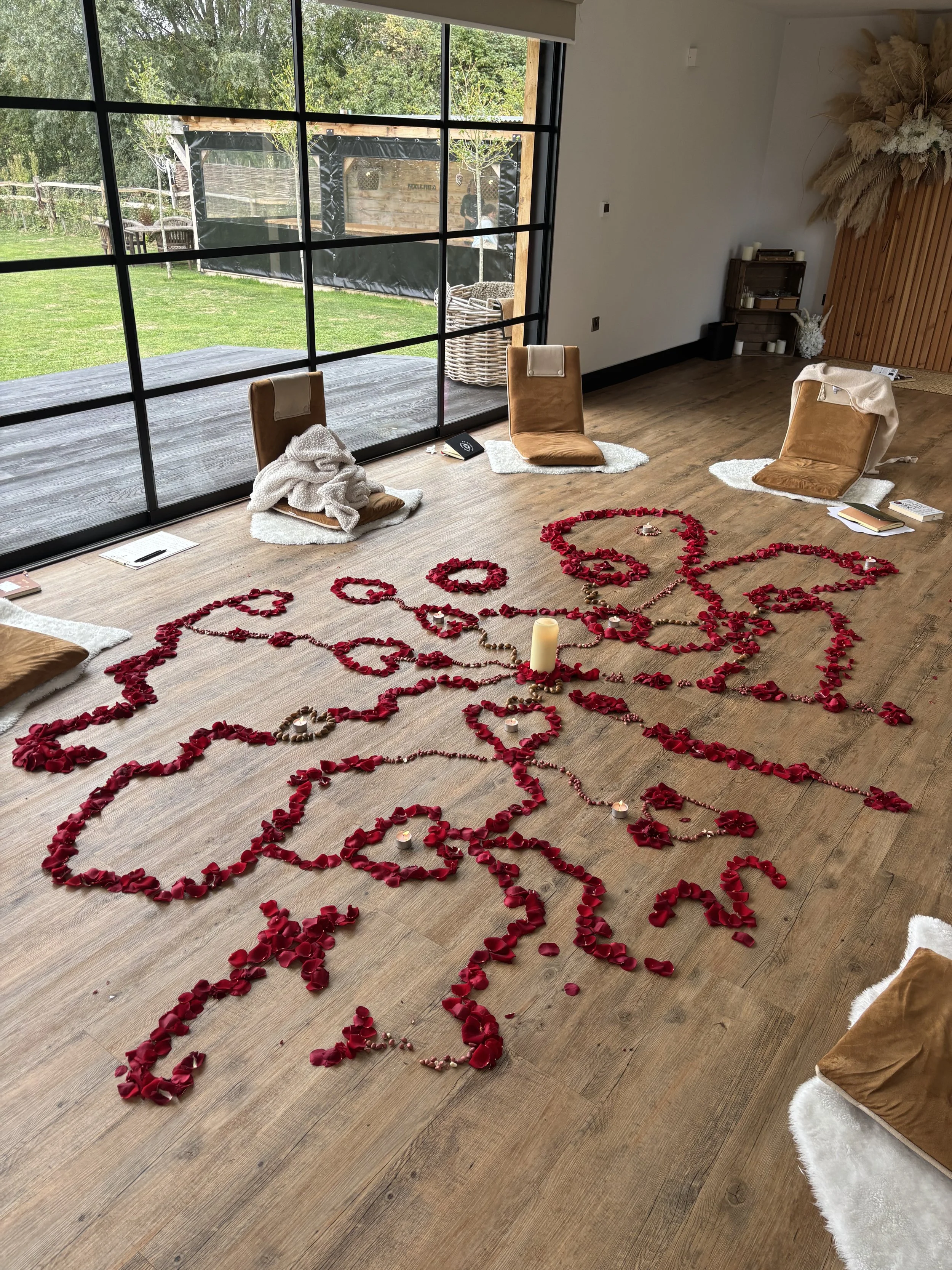 The space is simply magical! No other way to put it. As you drive down the country lane you begin to feel it. As you arrive and feel the energy of this space you will understand. We will be using the glass studio, fire pit and outside dining area throughout our time together. To be surrounded by the grace of nature is healing in itself. Fickle Field is a very special place.